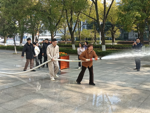 在“消防水带连接与使用”教学区,参训人员两人一组,协作完成水带铺设、接口连接、水枪握持射水等科目,进一步掌握消火栓系统的操作要领,为应对较大火情打下基础。