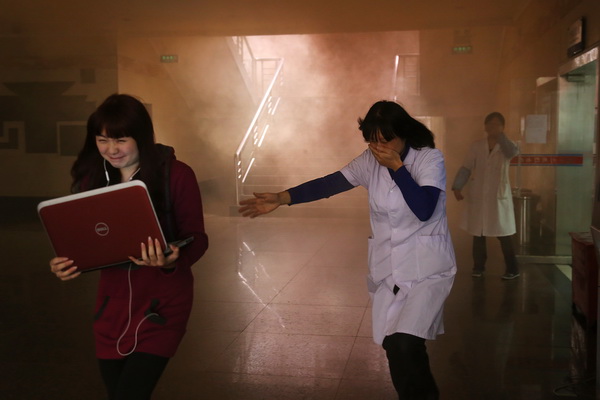 图书馆举行消防安全逃生实战演习