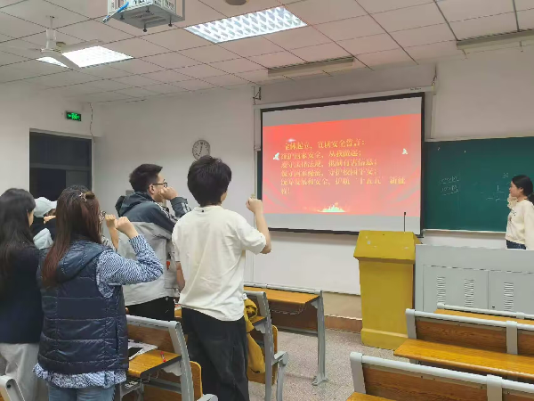 全体辅导员利用晚点名面向学生开展国家安全专题宣讲,组织观看反邪教宣讲视频及“千万师生同上一堂国家安全教育课”,深入解读《反间谍法》,通过班级群、学院公众号常态化推送安全知识,实现教育全覆盖。各学院通过组织师生开展大型签名活动、观看国家安全主题影片、国家安全教育主题班会,组织师生收看“思政大课”,签订安全责任书;各党支部还围绕“党员在维护国家安全中的先锋模范作用”开展主题党日活动,推动安全教育走深走实。